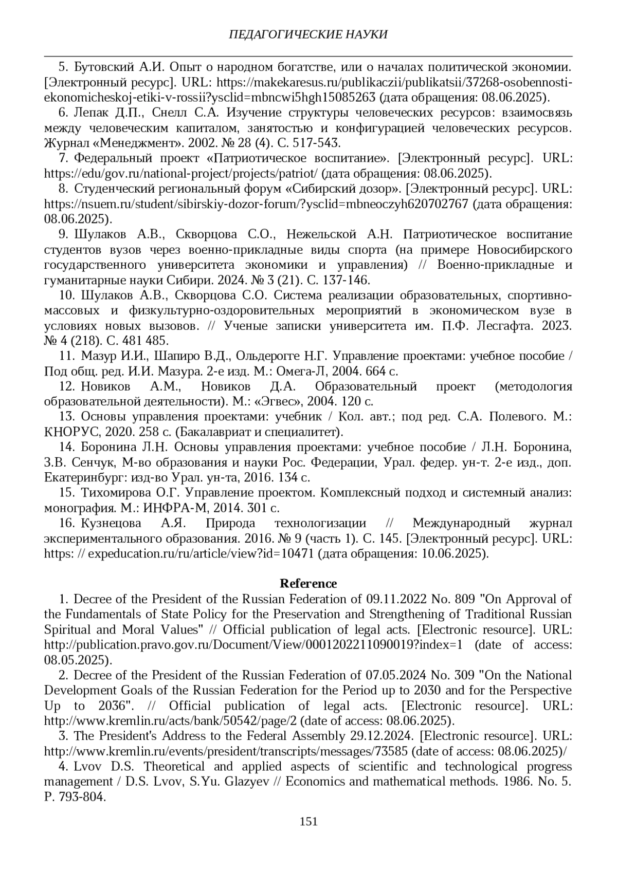 2. Указ Президента РФ от 07 мая 2024 г. № 309 “О национальных целях развития Российской Федерации на период до 2030 года и на перспективу до 2036 года” // Официальное опубликование правовых актов. [Электронный ресурс]. URL: http://www.kremlin.ru/acts/bank/50542/page/2 (дата обращения: 08.06.2025).