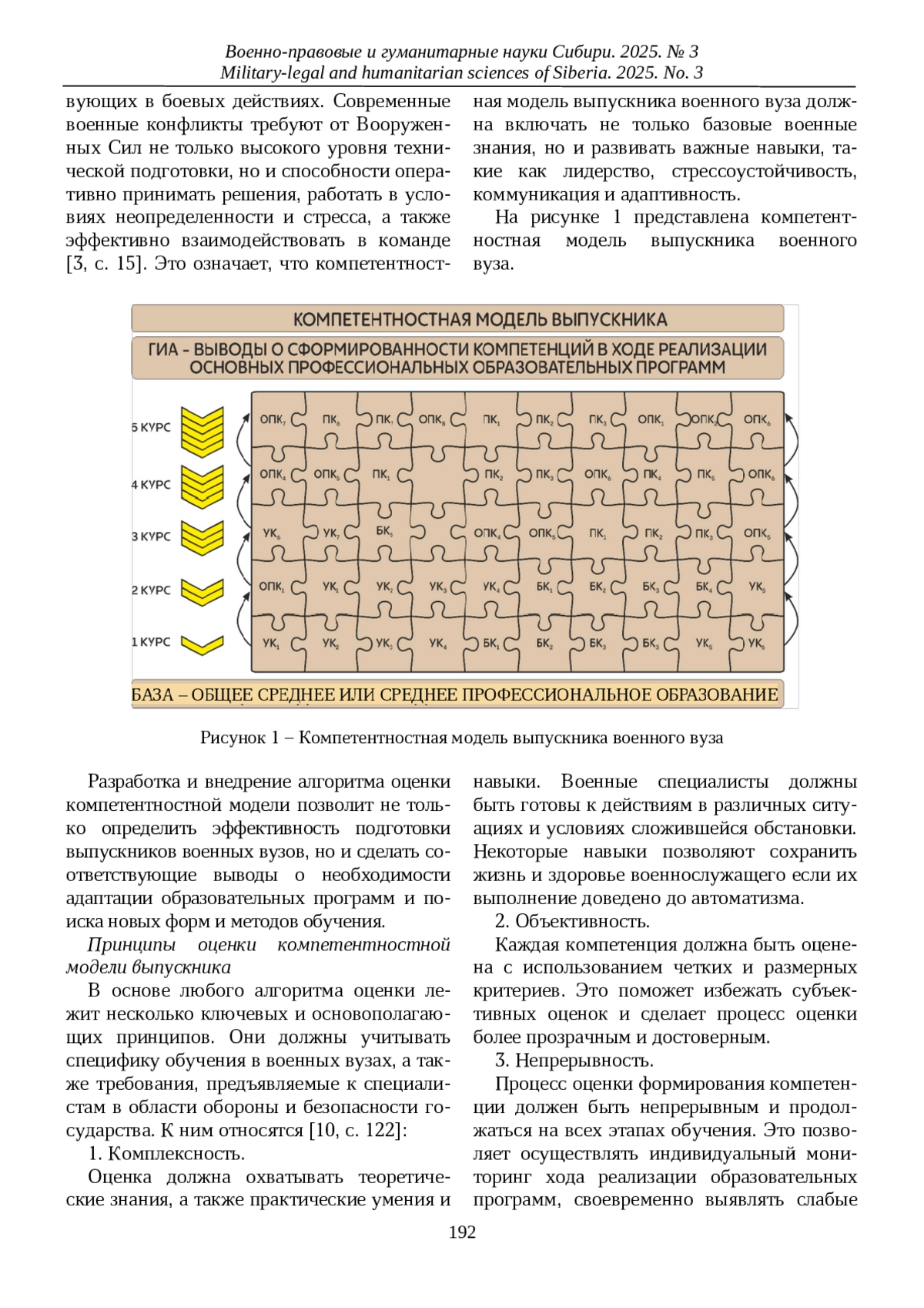 Качественное состояние современной системы военного образования играет ключевую роль в эффективности подготовки кадров для обеспечения безопасности и обороноспособности нашей страны. Высококвалифицированные специалисты, обладающие необходимыми компетенциями, являются основой для успешного выполнения задач в сфере обороны. Оценка сформированности ключевых компетенций выпускников военных вузов позволяет объективно определить их готовность к выполнению должностных обязанностей, а также выявить слабые места в обучении.
