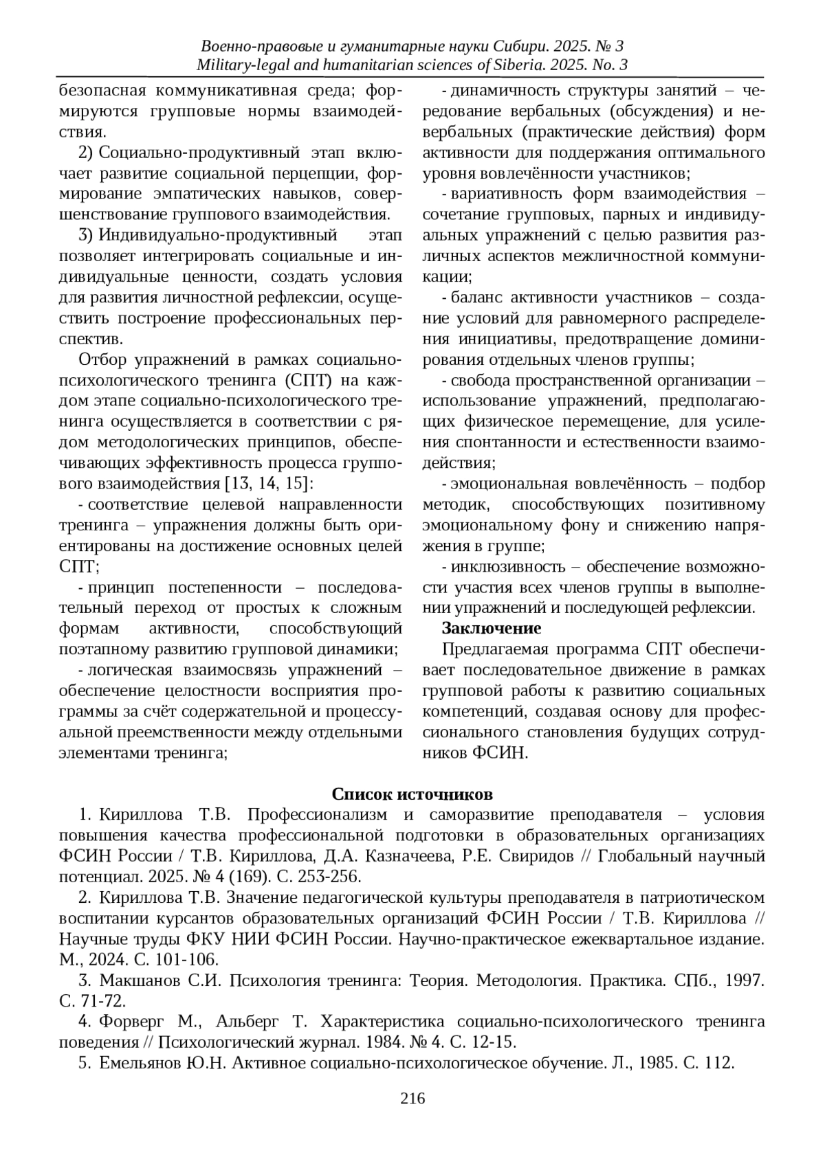 1. Кириллова Т.В. Профессионализм и саморазвитие преподавателя - условия повышения качества профессиональной подготовки в образовательных организациях ФСИН России / Т.В. Кириллова, Д.А. Казначеева, Р.Е. Свиридов // Глобальный научный потенциал. 2025. № 4 (169). С. 253-256. EDN: KJPUVX