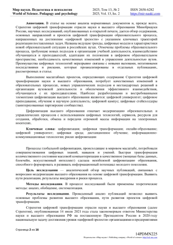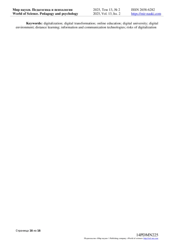 10. Минина В.М. Цифровизация высшего образования и ее социальные результаты / В.М. Минина. // Вестник Санкт-Петербургского университета. - 2020. - Т. 13, Вып. 1. С. 84-101. EDN: TSZWMF