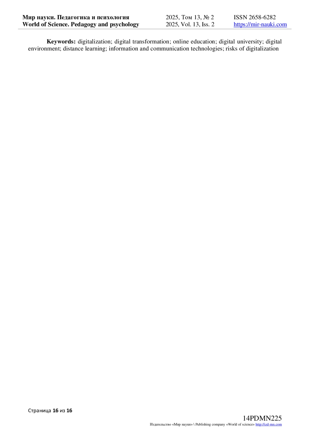 - ИЗДАТЕЛЬСТВО МИР НАУКИ