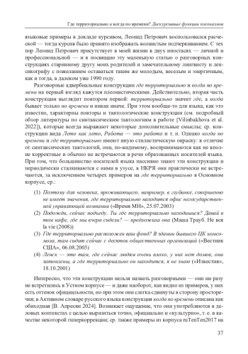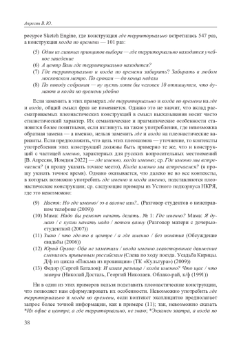 В статье анализируются дискурсивные функции разговорных плеонастических конструкций где территориально и когда по времени. На основе данных корпусов НКРЯ и ruTenTen2017 показывается, что эти выражения, несмотря на свою стилистическую небезупречность и семантическую избыточность, играют важную коммуникативную роль в высказывании. В отличие от местоименных конструкций с частицей именно (где именно, когда именно), их функция — не уточнение, а конкретизация более общего параметра. В вопросах они позволяют говорящему точно сигнализировать тип ожидаемой информации — указание на место или время, выраженное в абсолютных терминах, т. е. с указанием на конкретную территорию и точное время (на Пречистенке, в Северной Финляндии, завтра в час; 18 сентября в 12:30). В утверждениях подобные плеонастические конструкции служат контрастным средством фокусировки внимания адресата на том, о чем пойдет речь в дальнейшем высказывании. Аналогичные плеоназмы обнаруживаются в других языках, что позволяет говорить о более общем дискурсивном механизме. Функционально эти конструкции встраиваются в более широкий пласт коммуникативных средств, которые используются в начале клаузы для сигнализации ее дальнейшего содержания