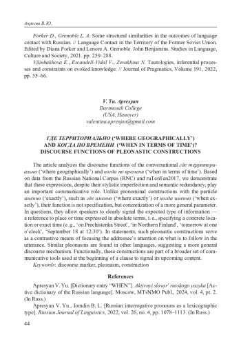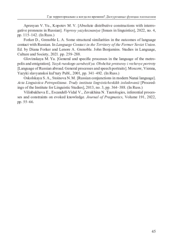 3. Апресян В. Ю., Копотев М. В. Абсолютивные дистрибутивные конструкции с вопросительными местоимениями в русском языке // Вопросы языкознания. 2022. № 4. С. 115-142. EDN: CWHWKV
