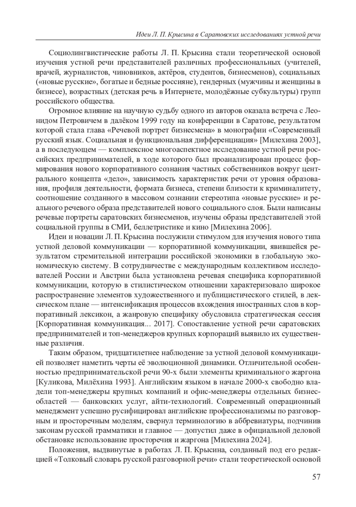 16. Милехина Т. А. Российские предприниматели и их речь (образ, концепты, типы речевых культур) / Под ред. О. Б. Сиротининой. Саратов: Изд-во Сарат. ун-та, 2006. 312 с.