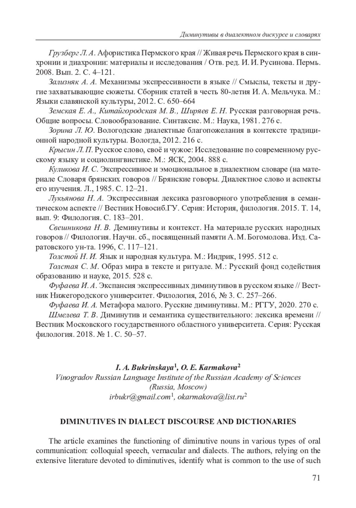 24. Фуфаева И. А. Экспансия экспрессивных диминутивов в русском языке // Вестник Нижегородского университет. Филология, 2016, № 3. С. 257-266.