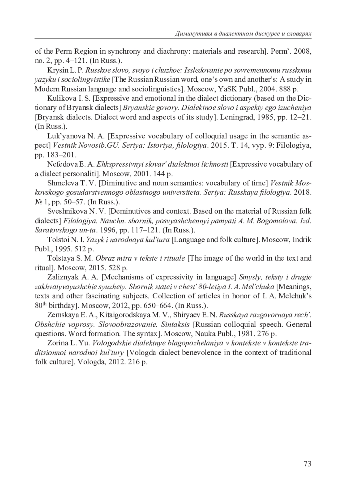 22. Толстой Н. И. Язык и народная культура. М.: Индрик, 1995. 512 с. EDN: UCFNOP