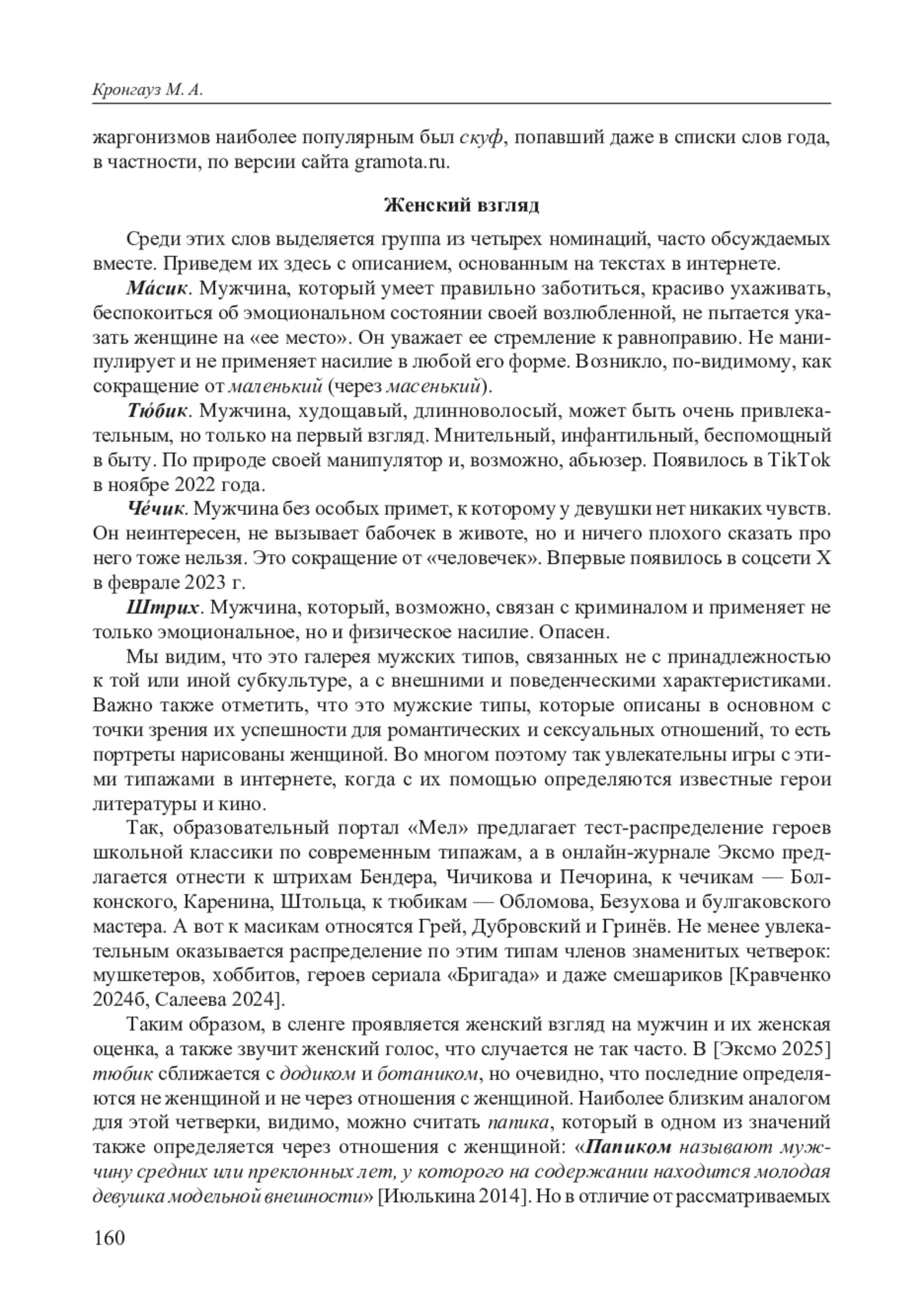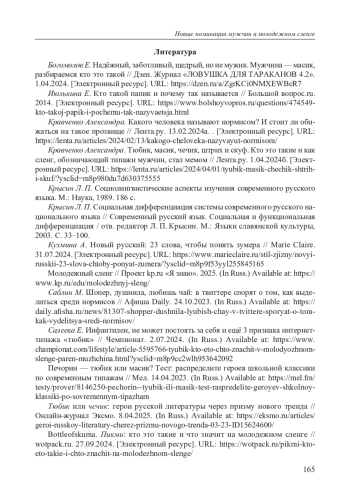 4. Кравченко Александра. Тюбик, масик, чечик, штрих и скуф. Кто это такие и как сленг, обозначающий типажи мужчин, стал мемом // Лента.ру. 1.04.2024б. [Электронный ресурс]. URL: https://lenta.ru/articles/2024/04/01/tyubik-masik-chechik-shtrih-i-skuf/?ysclid=m8p980du7d630375555.