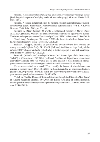7. Кузмина А. Новый русский: 23 слова, чтобы понять зумера // Marie Сlaire. 31.07.2024. [Электронный ресурс]. URL: https://www.marieclaire.ru/stil-zjizny/novyi-russkii-23-slova-chtoby-ponyat-zumera/?ysclid=m8p9f53yyl255845165.