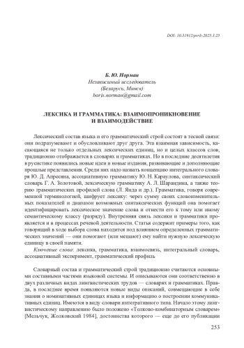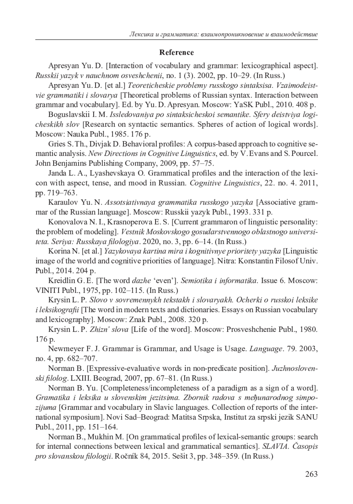 21. Норман Б., Мухин М. О грамматических профилях лексико-семантических групп: поиск внутренних связей между лексической и грамматической семантикой // SLAVIA. Časopis pro slovanskou filologii. Ročník 84, 2015. Sešit 3. C. 348-359.