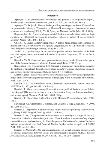 27. Janda L. A., Lyashevskaya О. Grammatical profiles and the interaction of the lexicon with aspect, tense, and mood in Russian. Cognitive Linguistics, 22. № 4. 2011. Pp. 719-763.