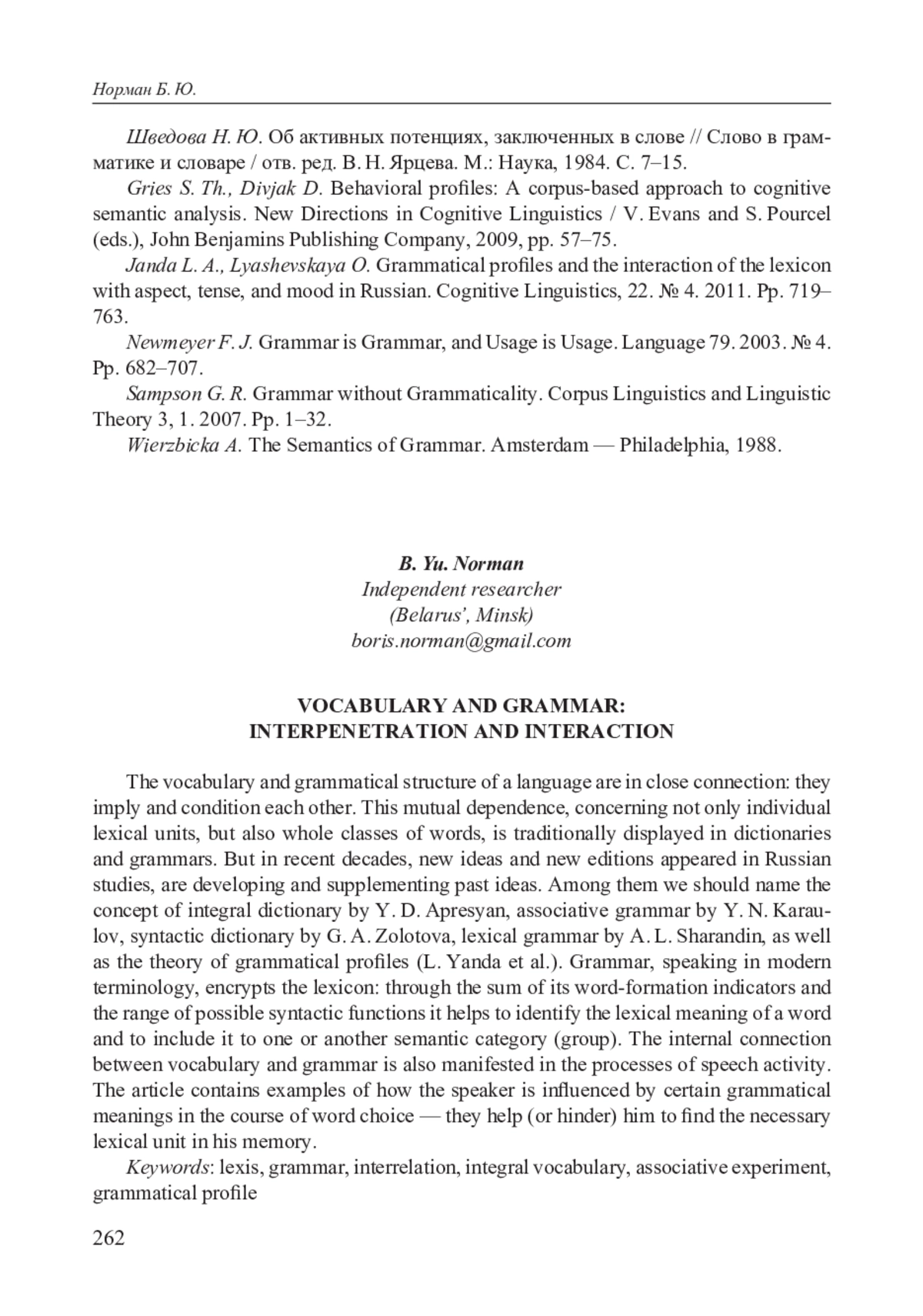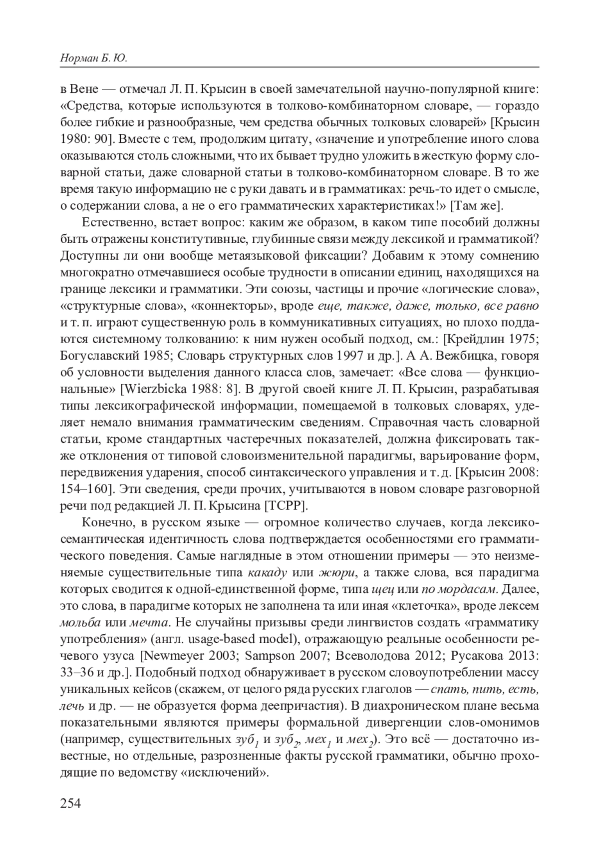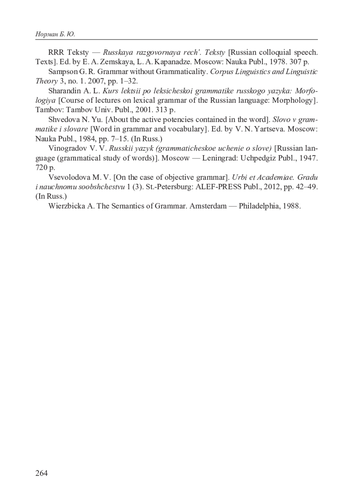 19. Норман Б. Ю. Полнота/неполнота парадигмы как признак слова // Граматика и лексика у словенским jезицима. Зборник радова с међународног симпозиjума. Нови Сад-Београд: Матица Српска, Институт за српски jезик САНУ, 2011. С. 151-164.