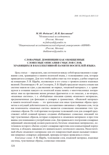 Цель статьи — определить, как соотносятся между собой представления о содержании слов, хранящиеся в памяти носителей языка, с толкованиями слов, которые приводятся в словарях. Для того чтобы найти ответ на этот вопрос, удобно опереться на концепцию Л. В. Щербы, изложенную в его статье о трояком аспекте языковых явлений. Полемизируя с Ф. де Соссюром, Л. В. Щерба предлагает видеть в языке как системе знаков не одно, а два явления: во-первых, «языковой материал», т. е. хранящуюся в сознании каждого из носителей языка память о многочисленных воспринятых ими на протяжении жизни речевых фрагментах и их смыслах, а во-вторых, «языковые системы», т. е. обобщённые описания единиц «языкового материала», предназначенные для фиксации в словарях и грамматиках. «Языковой материал» в памяти носителей языка — это зрительные или иные чувственные образы предметов и ситуаций действительности, ассоциативно связанные с образами слов, тогда как компоненты «языковых систем» являются словесными описаниями этих чувственных образов. По этой причине построение толкований слов для словарей представляет собой сложный процесс создания обобщенных словесных описаний тех черт чувственных образов, которые содержатся в «языковом материале» и при этом важны для понимания и употребления слов. Для правильного построения словарных дефиниций лексикограф должен располагать богатым «языковым материалом», источником которого обычно служит словарная картотека или компьютерный корпус текстов, и обладать навыками его внимательного логического анализа. Недостаточный объем «языкового материала» или его поверхностный анализ вызывает появление неверных словарных дефиниций, примеры которых приведены в статье