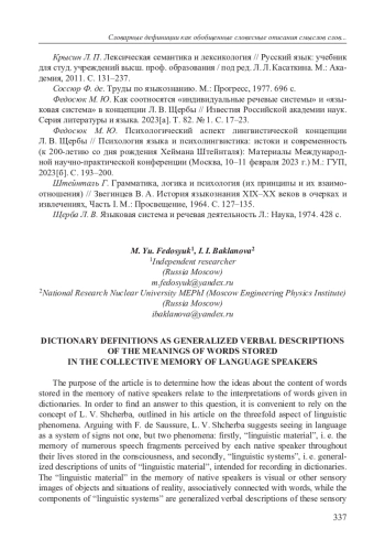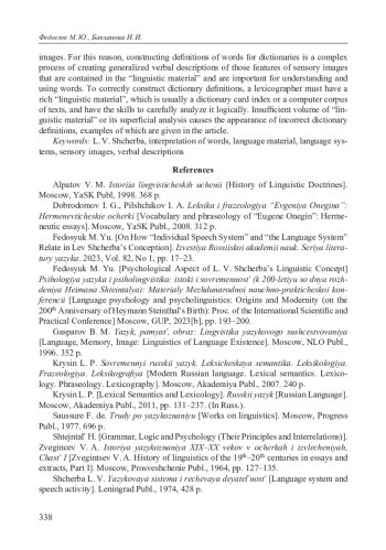 8. Федосюк М. Ю. Психологический аспект лингвистической концепции Л. В. Щербы // Психология языка и психолингвистика: истоки и современность (к 200-летию со дня рождения Хеймана Штейнталя): Материалы Международной научно-практической конференции (Москва, 10-11 февраля 2023 г.) М.: ГУП, 2023[б]. С. 193-200. EDN: NTTLAM