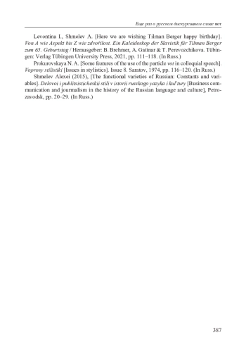 20. Шмелев А. Д. Функциональные разновидности русского языка: константы и переменные // Деловой и публицистический стили в истории русского языка и культуры. Петрозаводск: Изд-во ПетрГУ, 2015. С. 20-29.