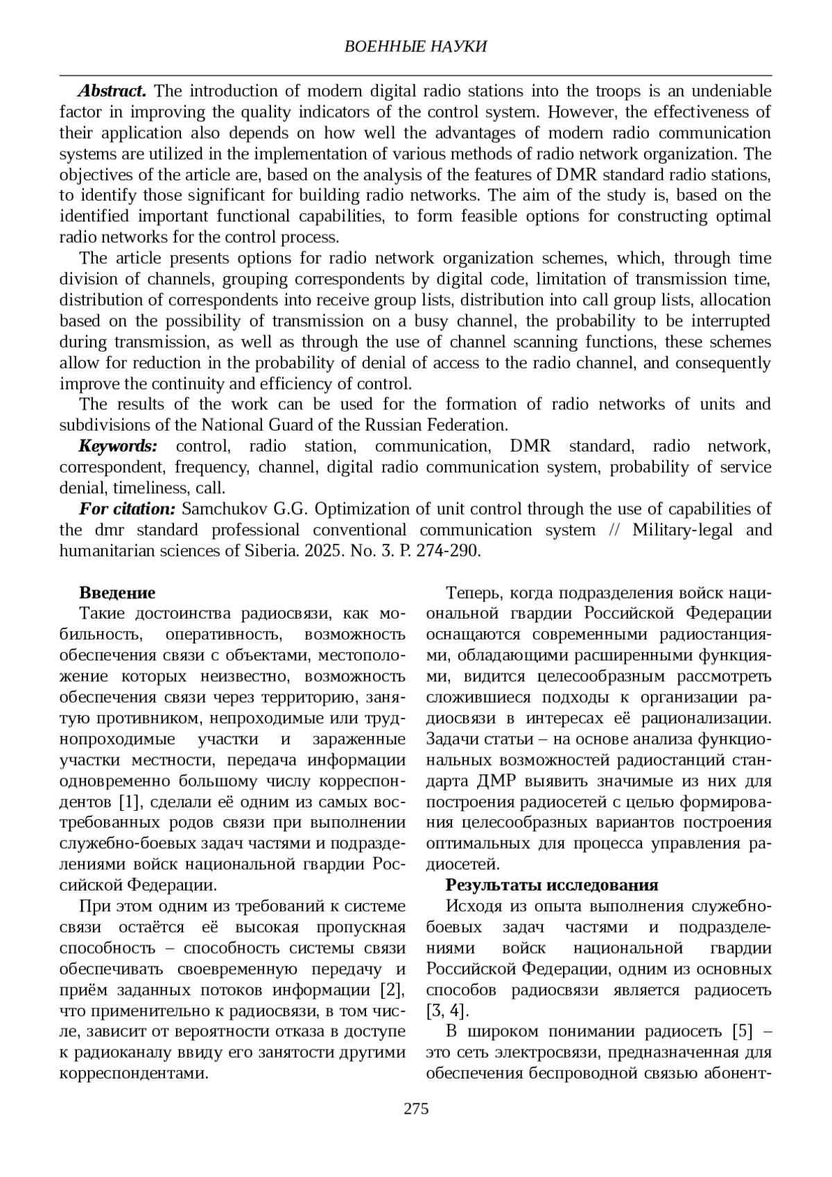 Такие достоинства радиосвязи, как мобильность, оперативность, возможность обеспечения связи с объектами, местоположение которых неизвестно, возможность обеспечения связи через территорию, занятую противником, непроходимые или труднопроходимые участки и зараженные участки местности, передача информации одновременно большому числу корреспондентов [1], сделали её одним из самых востребованных родов связи при выполнении служебно-боевых задач частями и подразделениями войск национальной гвардии Российской Федерации.