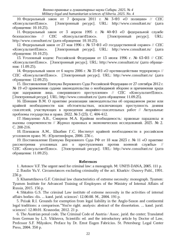 17. Никуленко А.В., Смирнов М.А. Крайняя необходимость: правовые парадоксы и вызовы современности // Журнал правовых и экономических исследований. 2025. № 2. С. 208-216. EDN: CCHKGA