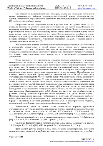 11. Гусев, Д.И. Этимология идиомы как основа для переводческой модуляции значения / Д.И. Гусев, А.В. Белозерцев // Вестник Шадринского государственного педагогического университета. - 2022. - № 4(56). - С. 111-114. - 10.52772/25420291_2022_4_111 (дата обращения: 05.04.2025). DOI: 10.52772/25420291_2022_4_111(