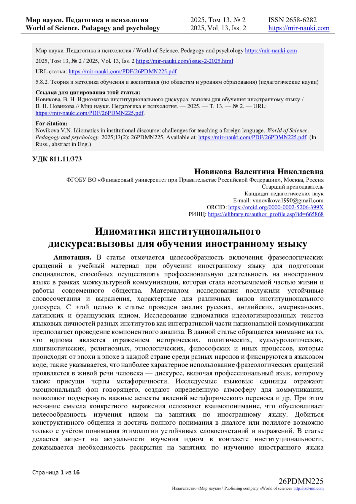 - ИЗДАТЕЛЬСТВО МИР НАУКИ