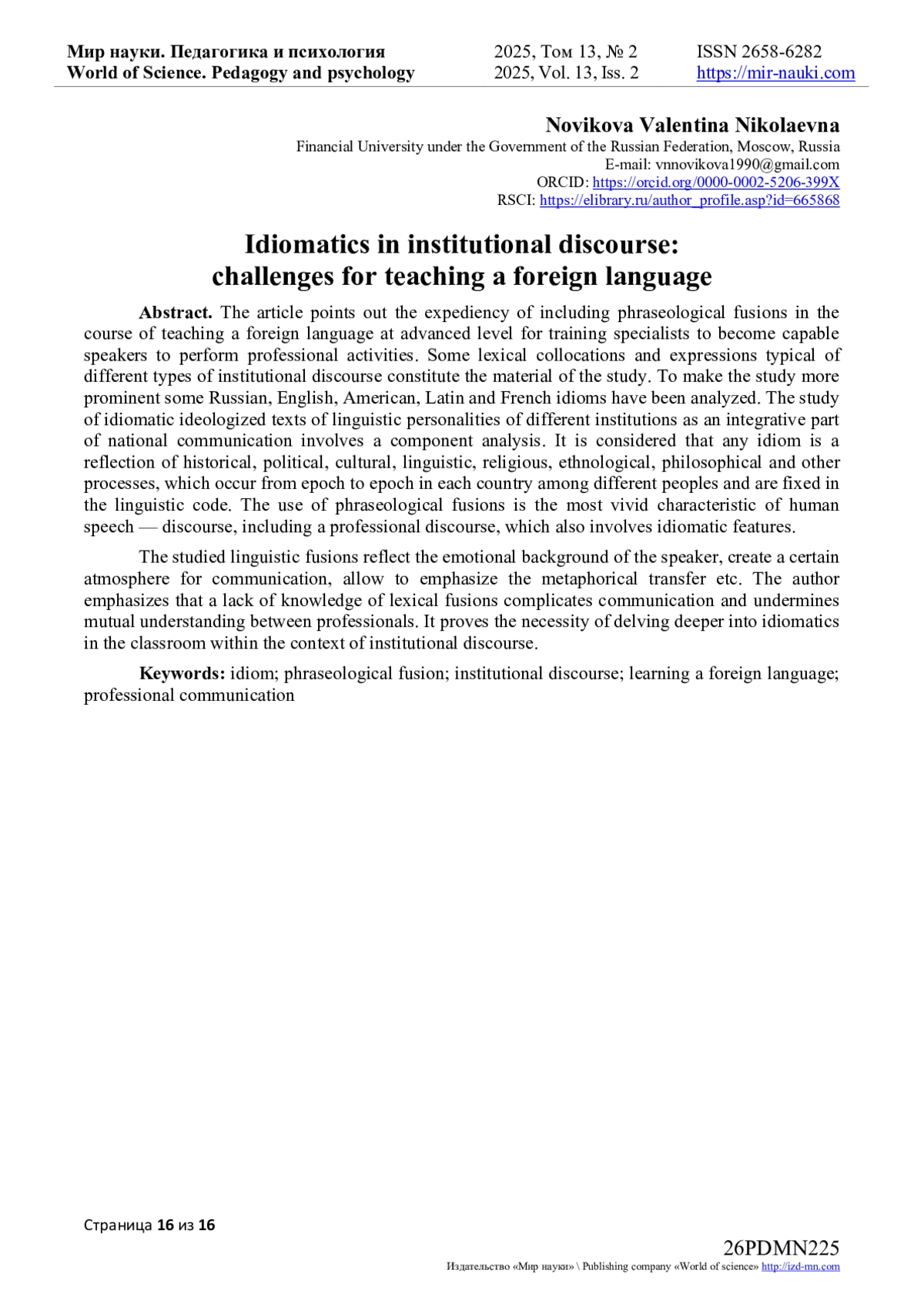 15. Дронов, И.С. Типы институционального дискурса в обучении иностранному языку / И.С. Дронов // Вестник Тамбовского университета. Серия: Гуманитарные науки. - 2020. - Т. 25, № 187. - С. 29-36. - 10.20310/1810-0201-2020-25-187-29-36 (дата обращения: 05.04.2025). DOI: 10.20310/1810-0201-2020-25-187-29-36( EDN: AYQQCD