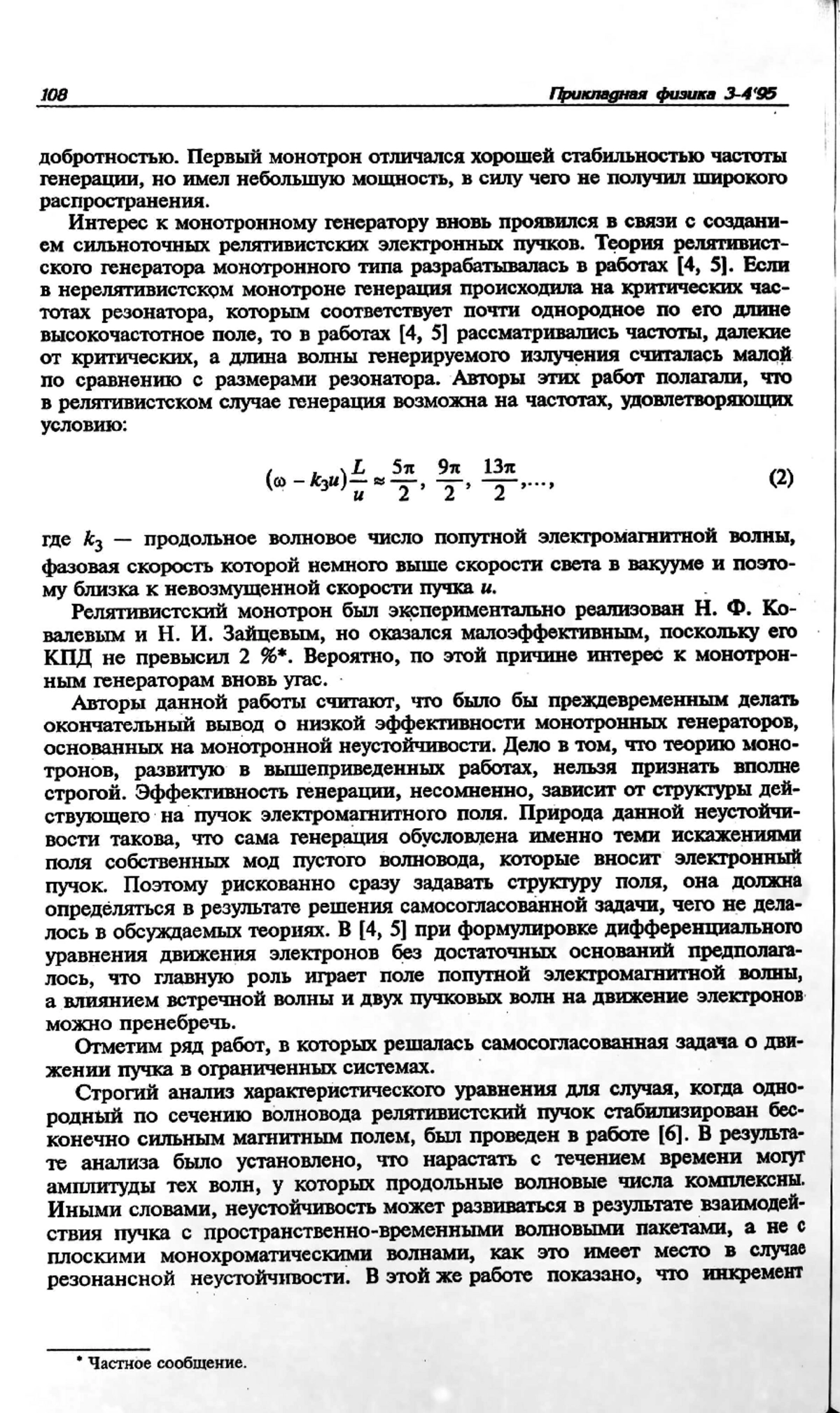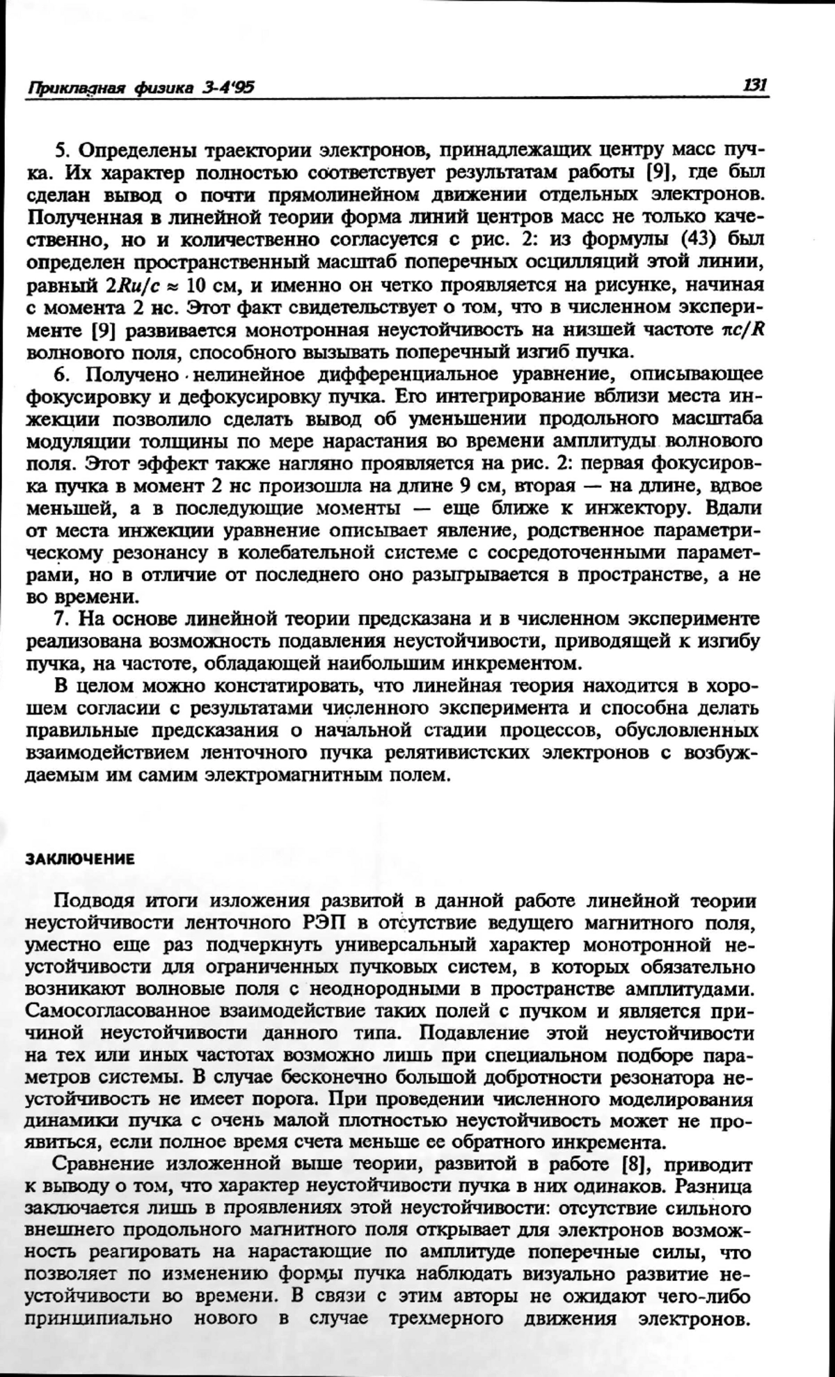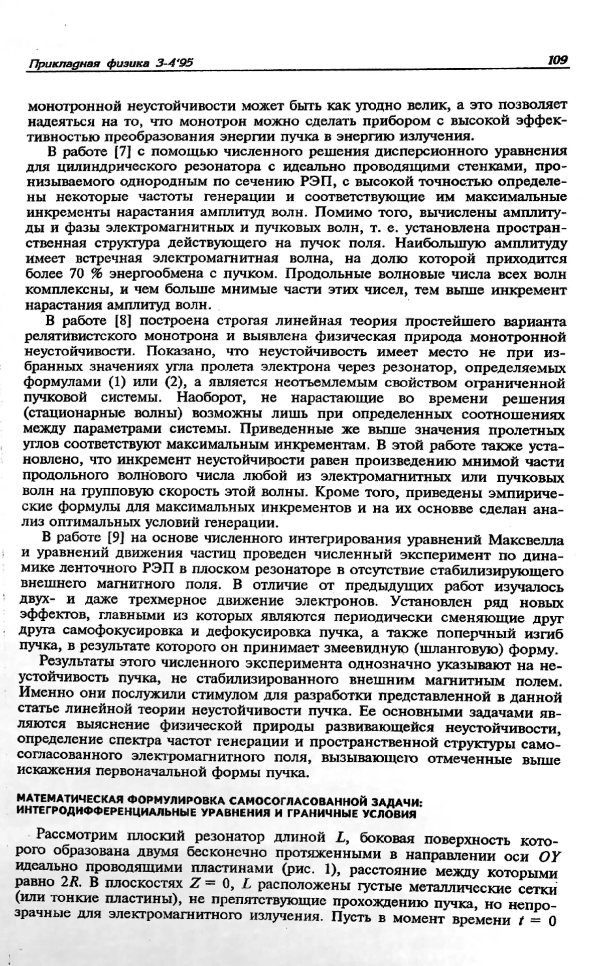 Подводя итоги изложения развитой в данной работе линейной теории неустойчивости ленточного РЭП в отсутствие ведущего магнитного поля, уместно еще раз подчеркнуть универсальный характер монотронной неустойчивости для ограниченных пучковых систем, в которых обязательно возникают волновые поля с неоднородными в пространстве амплитудами. Самосогласованное взаимодействие таких полей с пучком и является причиной неустойчивости данного типа. Подавление этой неустойчивости на тех или иных частотах возможно лишь при специальном подборе параметров системы. В случае бесконечно большой добротности резонатора неустойчивость не имеет порога. При проведении численного моделирования динамики пучка с очень малой плотностью неустойчивость может не проявиться, если полное время счета меньше ее обратного инкремента.