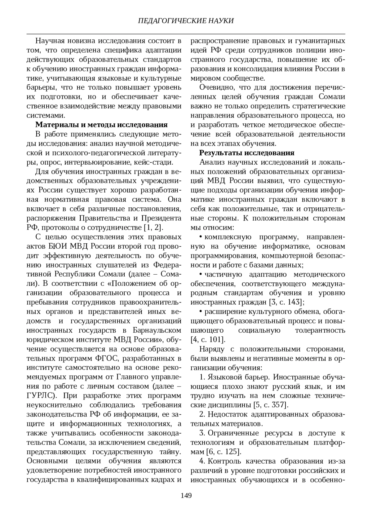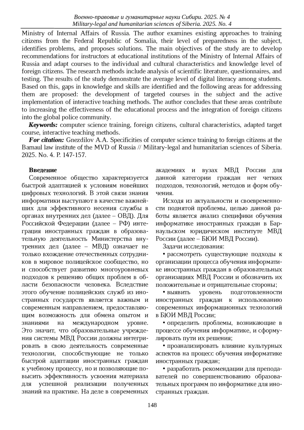 Целью работы является анализ специфики обучения информатике иностранных граждан в Барнаульском юридическом институте МВД России. Автором изучаются существующие подходы к обучению граждан из Федеративной Республики Сомали, уровень их подготовленности по дисциплине, выделяются проблемы и предлагаются пути их решения.