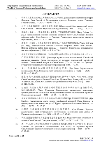 10. 孙荣浩.冼星海音乐美育思想浅谈[J].教育视界. [Сун Жунхао. Краткое рассмотрение идей музыкального эстетического воспитания Сянь Синхая // Горизонты образования.] - 2024. - № 13. - С. 45-48.