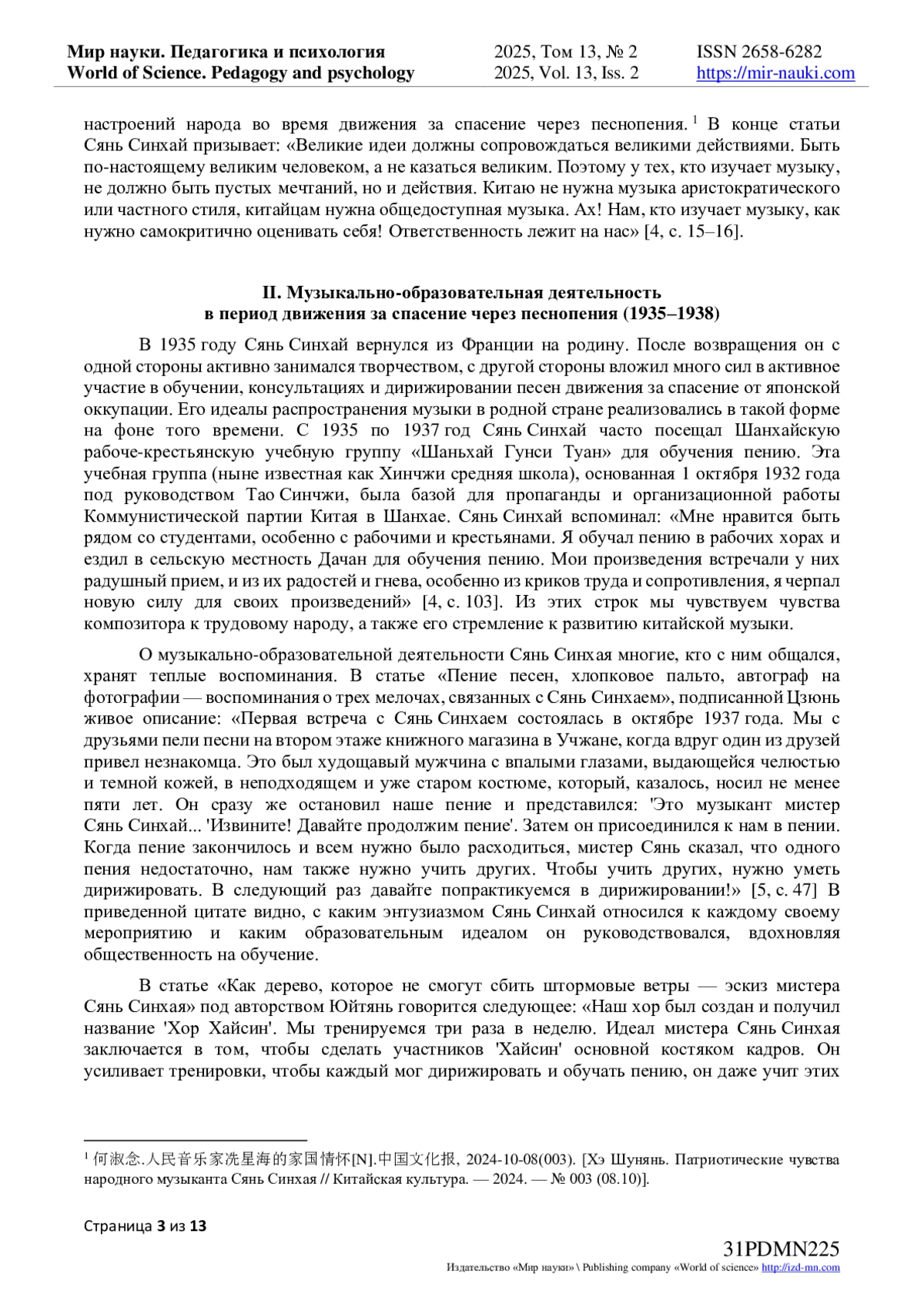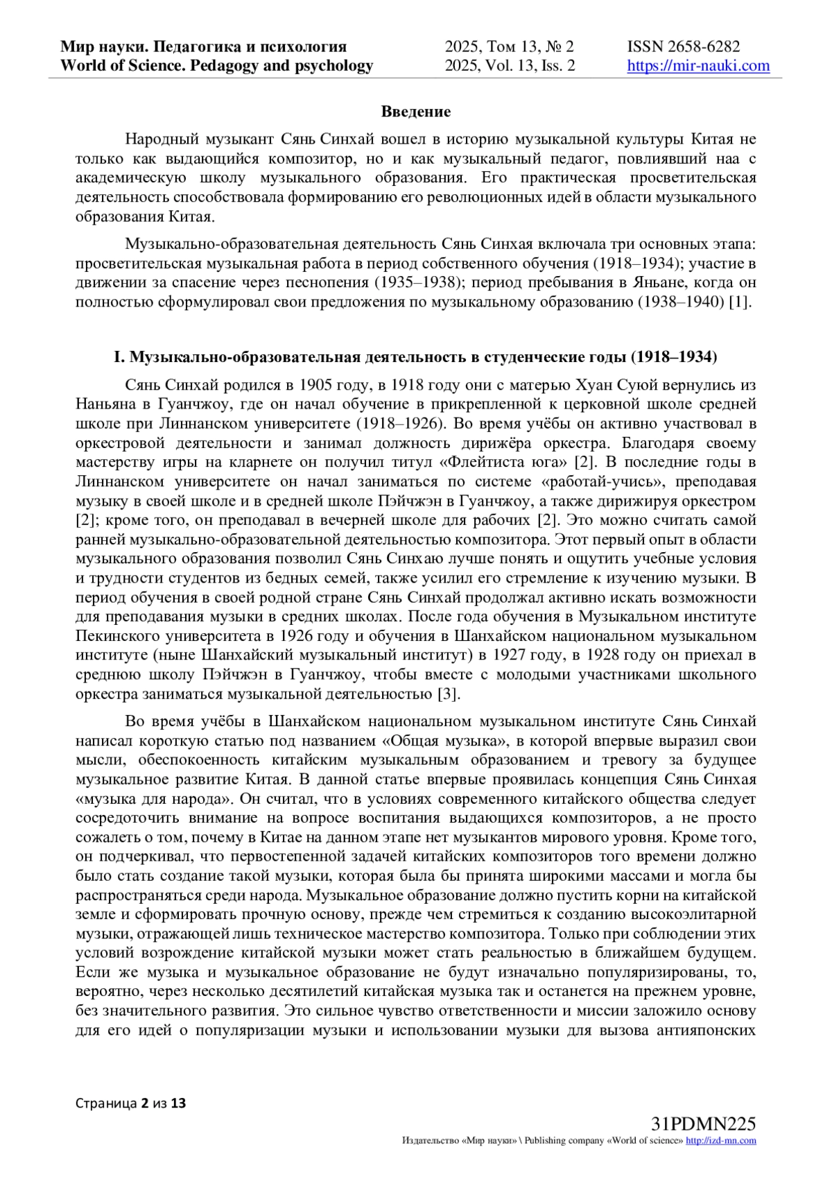 9. 祁斌斌.冼星海海外生涯与其人格精神形成的关系研究[J].星海音乐学院学报. [Ци Бинбин. Исследование связи между зарубежной карьерой Сянь Синьхая и формированием его личности и духа // Журнал музыкальной академии Синьхая.] - 2023. - № 04. - С. 19-27.