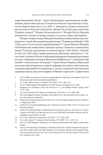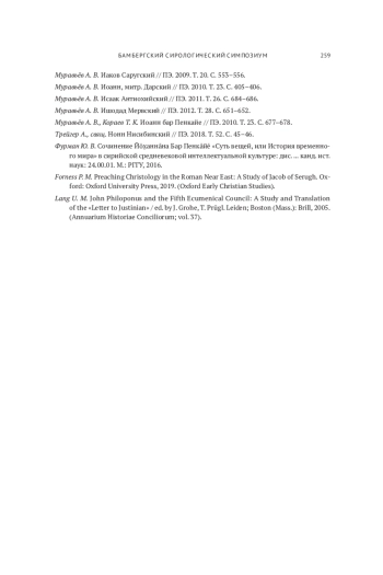 14. Кораев Т. К. Дионисий бар Салиби // ПЭ. 2007. Т. 15. С. 324-325. Лакомкин В., свящ. Иоанн Филопон // ПЭ. 2010. Т. 24. С. 628-647. Муравьёв А. В. Авдишо бар Бриха // ПЭ. 2000. Т. 1. С. 121.