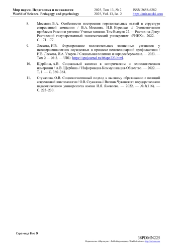 11. Стукалова, О.В. Социокогнитивный подход к высшему образованию с позиций современной эпистемологии / О.В. Стукалова // Вестник Чувашского государственного педагогического университета имени И.Я. Яковлева. - 2022. - № 3(116). - С. 223-230. EDN: IWUYIV