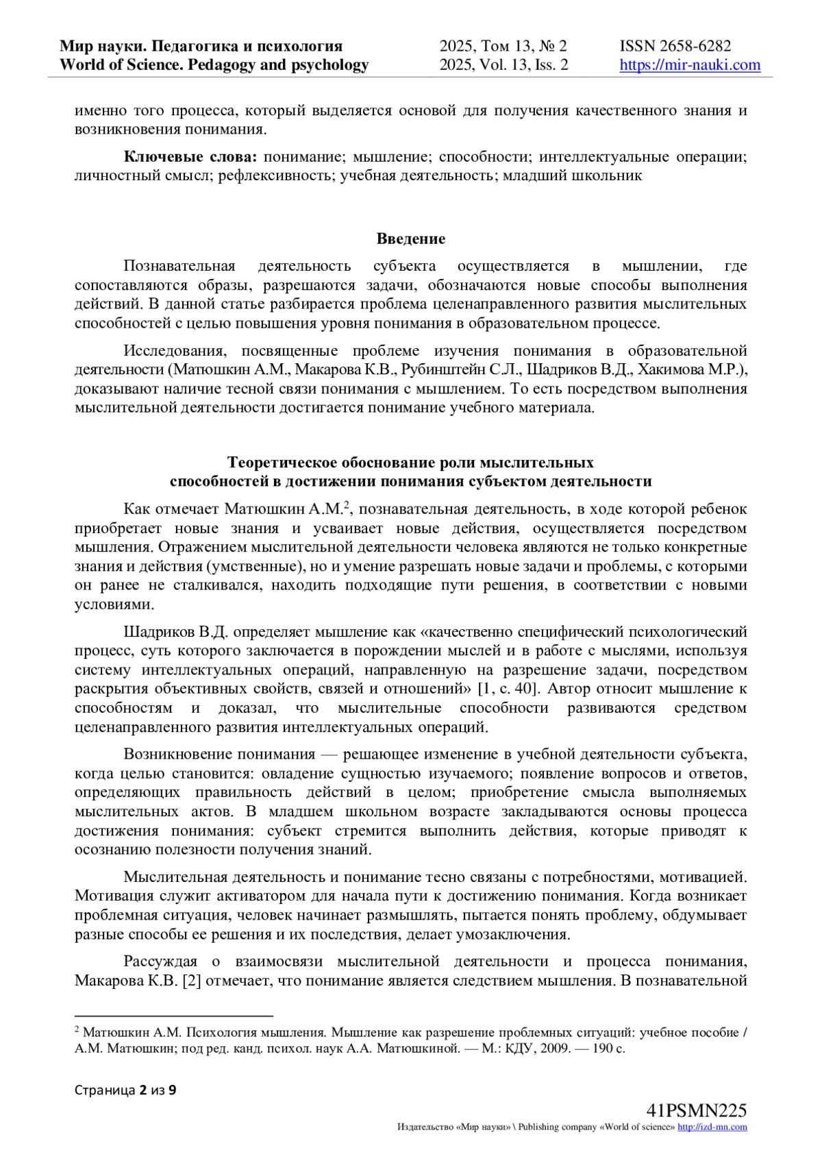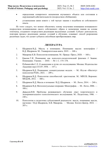 10. Психология и педагогика субъективной реальности: мысль, понимание мысли, научение / В.Д. Шадриков, К.В. Макарова. - Москва: Когито-Центр, 2024. - 203 с. EDN: HPWYXR