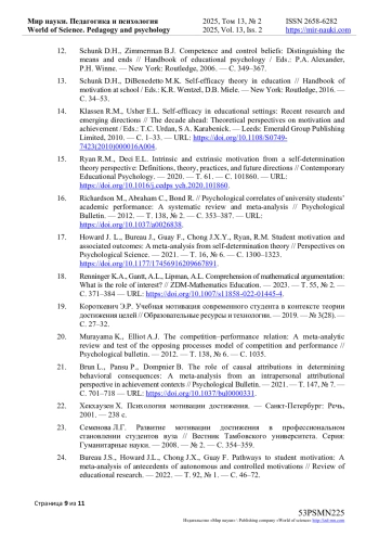 13. Schunk D.H., DiBenedetto M.K. Self-efficacy theory in education // Handbook of motivation at school / Eds.: K.R. Wentzel, D.B. Miele. - New York: Routledge, 2016. - С. 34-53.