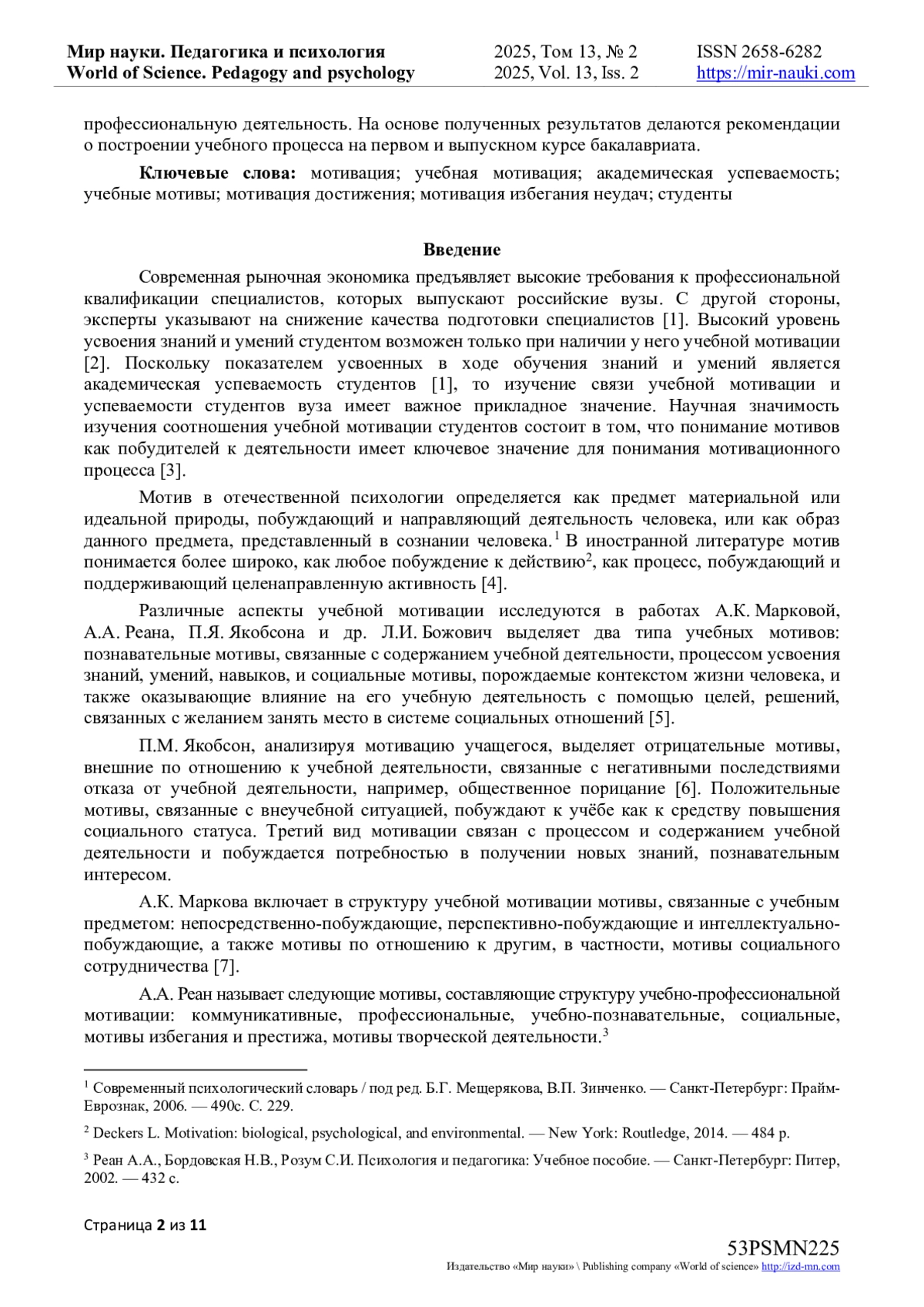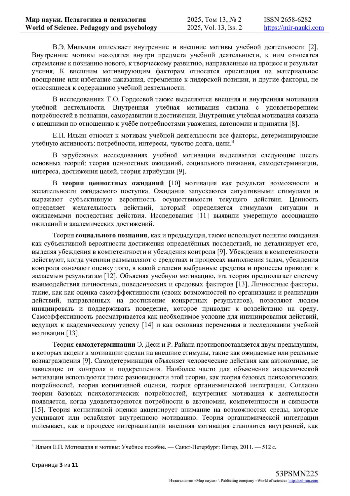 15. Ryan R.M., Deci E.L.Intrinsic and extrinsic motivation from a self-determination theory perspective: Definitions, theory, practices, and future directions // Contemporary Educational Psychology. - 2020. - Т. 61. - С. 101860. DOI: 10.1016/j.cedpsych.2020.101860 EDN: NTRRAS