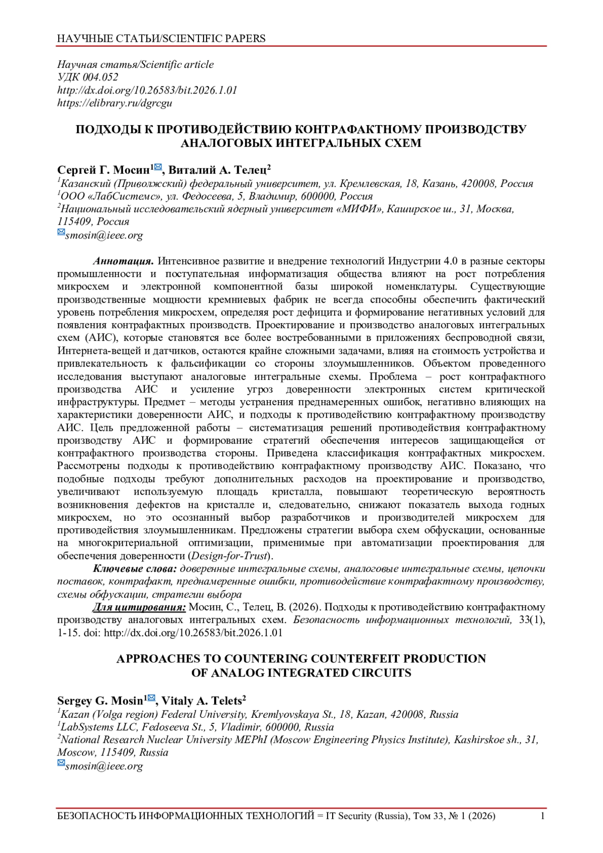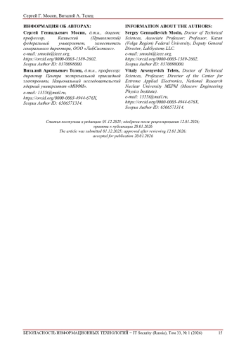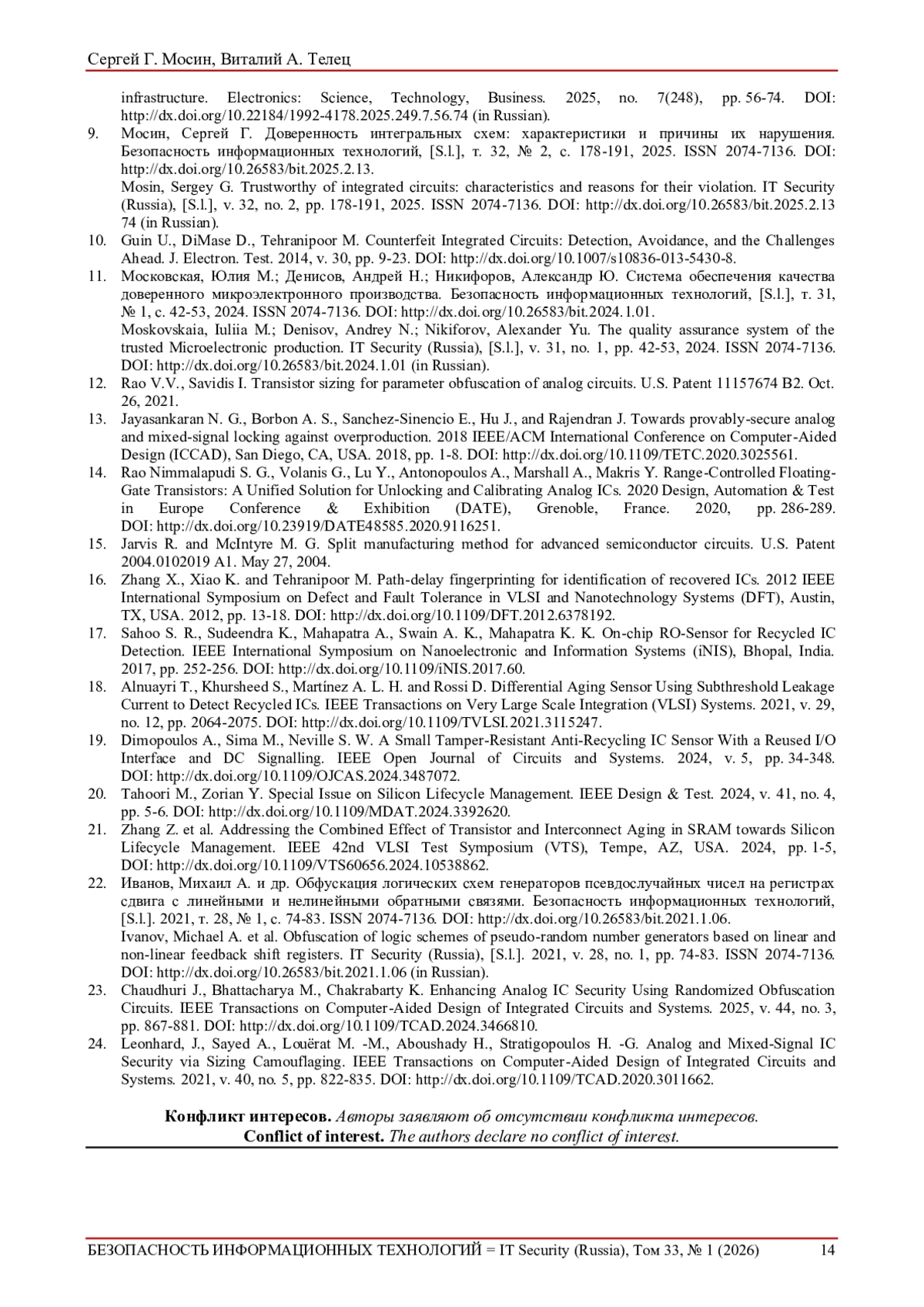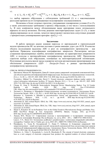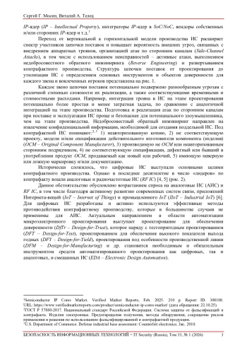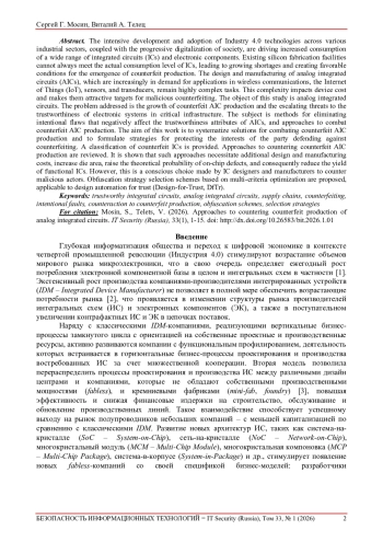9. Мосин, Сергей Г. Доверенность интегральных схем: характеристики и причины их нарушения. Безопасность информационных технологий, [S.l.], т. 32, № 2, с. 178-191, 2025. ISSN 2074-7136. DOI: 10.26583/bit.2025.2.13