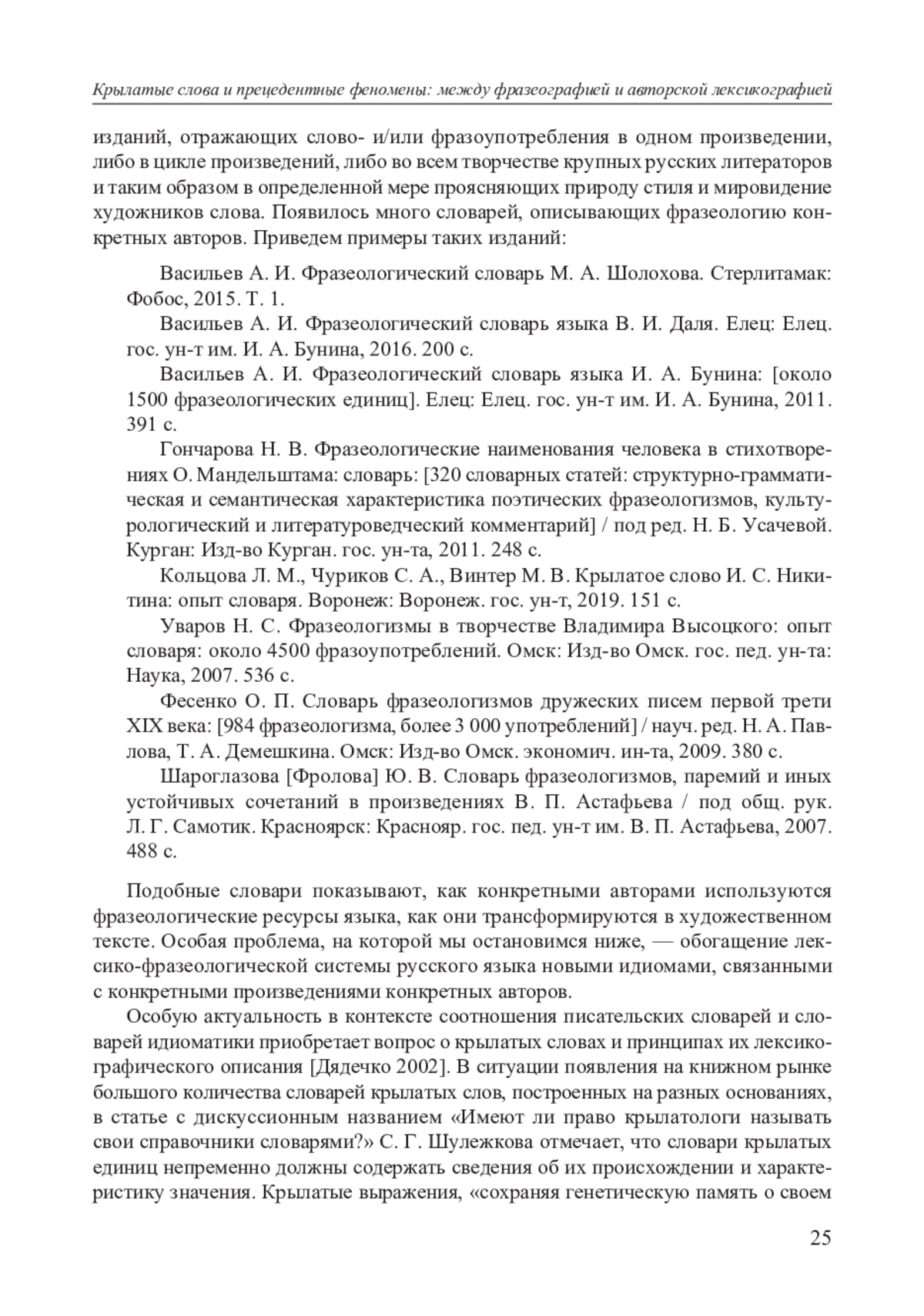 17. Шулежкова С. Г. Имеют ли право крылатологи называть свои справочники словарями? (Размышления по поводу языкового статуса крылатых единиц и принципов их лингвистического описания) // Мир русского слова. 2010. № 4. С. 23-28. EDN: NUXXYL