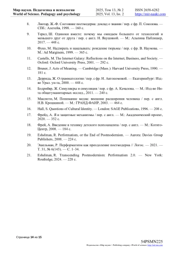 1. Gergen, K.J. The Saturated Self: Dilemmas of Identity in Contemporary Life. - New York: Basic Books, 1991. - 270 с.