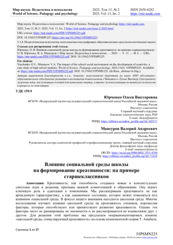 22. Улановская, И.М. Что такое образовательная среда школы и как ее выявить? / И.М. Улановская, Н.И. Поливанова, И.В. Ермакова // Вопросы психологии. - 1998. - № 6. - С. 18-24. EDN: AIEWNO