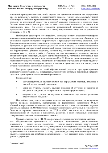 3. Геворкян Е.Н., Савенков А.И., Львова А.С., Никитина Э.К. Мини-видеолекция и когнитивный диалог как инструменты модернизации учебной деятельности // Педагогика. 2023. Т. 87. № 3. - С. 5-15. EDN: DMOMDI