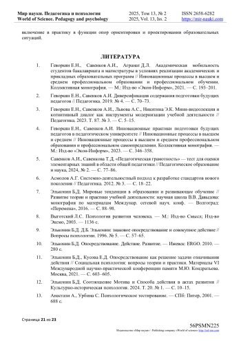 2. Геворкян Е.Н., Савенков А.И. Диверсификация содержания подготовки будущих педагогов // Педагогика. 2019. № 4. - С. 70-73.