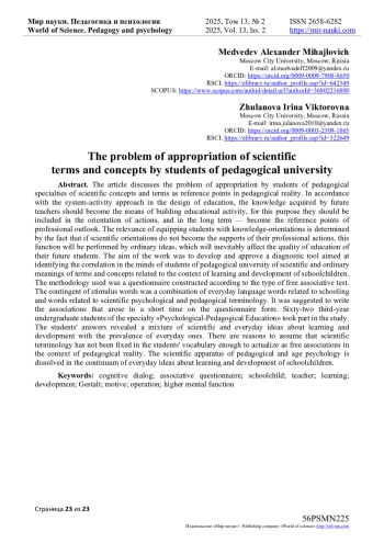 В статье обсуждается проблема присвоения студентами педагогических специальностей научных понятий и терминов в качестве ориентиров в педагогической реальности. В соответствии с системно-деятельностным подходом в проектировании образования, приобретаемые будущими учителями знания должны становиться средствами построения образовательной деятельности, для этого они должны быть включены в ориентировку действий, а в перспективе - стать ориентирами профессионального мировоззрения. Актуальность оснащения студентов знаниями-ориентирами определяется тем, что если научные ориентиры не станут опорами их профессиональных действий, эту функцию начнут выполнять обыденные представления, что неизбежно скажется на качестве образования их будущих учеников.