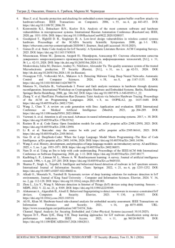 9. Ovasapyan T.D., Volkovskii M.A., Makarov A.S. Detecting Malware Using Deep Neural Networks. Automatic Control and Computer Sciences. 2024, v. 58, no. 8, pp. 1147-1155. DOI: 10.3103/S0146411624700779