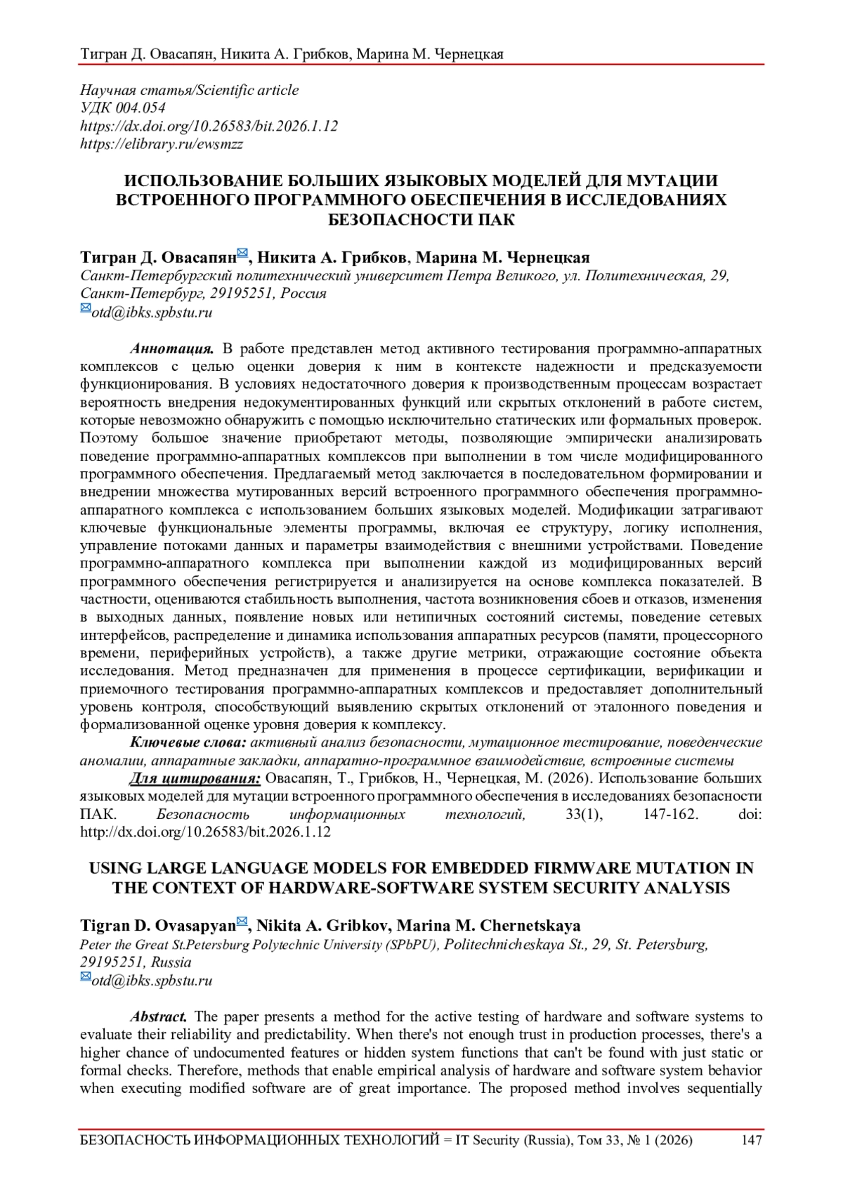 34. Abtahi S.M., Azim A. Securing LLM-generated embedded firmware through AI agent-driven validation and patching. arXiv preprint arXiv:2509.09970, 2025. 15 p.