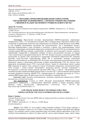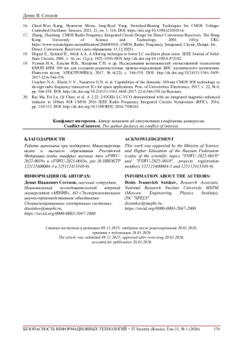 15. Sotskov D.I. et al. Design and Test Issues of a SOl CMOS Voltage Controlled Oscillators for Radiation Tolerant Frequency Synthesizers. 2018 IEEE East-West Design Test Symposium (EWDTS), 2018, pp. 1-4. DOI: 10.1109/EWDTS.2018.8524835