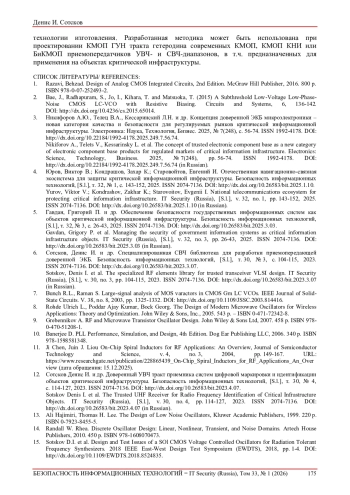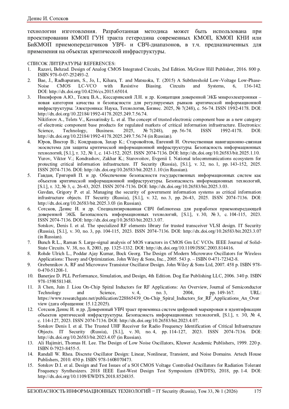 12. Сотсков Денис И. и др. Доверенный УВЧ тракт приемника систем цифровой маркировки и идентификации объектов критической инфраструктуры. Безопасность информационных технологий, [S.l.], т. 30, № 4, с. 114-127, 2023. ISSN 2074-7136. DOI: 10.26583/bit.2023.4.07