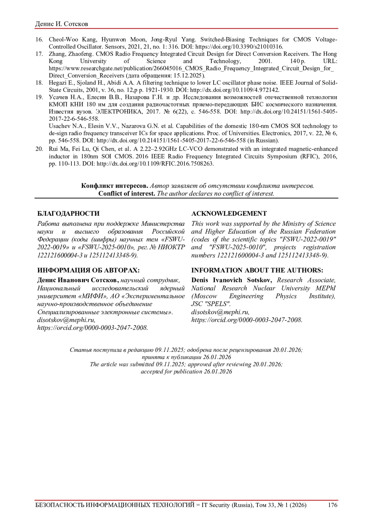 17. Zhang, Zhaofeng. CMOS Radio Frequency Integrated Circuit Design for Direct Conversion Receivers. The Hong Kong University of Science and Technology, 2001. 140 p. URL: https://www.researchgate.net/publication/266045016_CMOS_Radio_Frequency_Integrated_Circuit_Design_for_Direct_Conversion_Receivers (дата обращения: 15.12.2025).