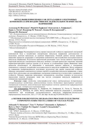 Kozlov, A.N. (2007). Analiz degradatsionnogo vozdeistviya SVCh-izlucheniya na elementy i ustroistva vychislitel’noi tekhniki i sistem upravleniya ob“ektami aviatsionno-kosmicheskoi tekhniki [Analysis of the degradation impact of microwave radiation on elements and devices of computer technology and control systems for aerospace equipment objects]. Vestnik RGRTU, 21, s. 89-93. URL: https://rsreu.ru/component/docman/doc_download/790-a-n-kozlov-analiz-degradatsionnogo-vozdejstviya-svch-izlucheniya-na-elementy-i-ustrojstva-vychislitelnoj-tekhniki-i-sistem-upravleniya-ob-ektami-aviatsionno-kosmicheskoj-tekhniki-s-89-93 (accessed: 25.12.2025) (in Russian).
