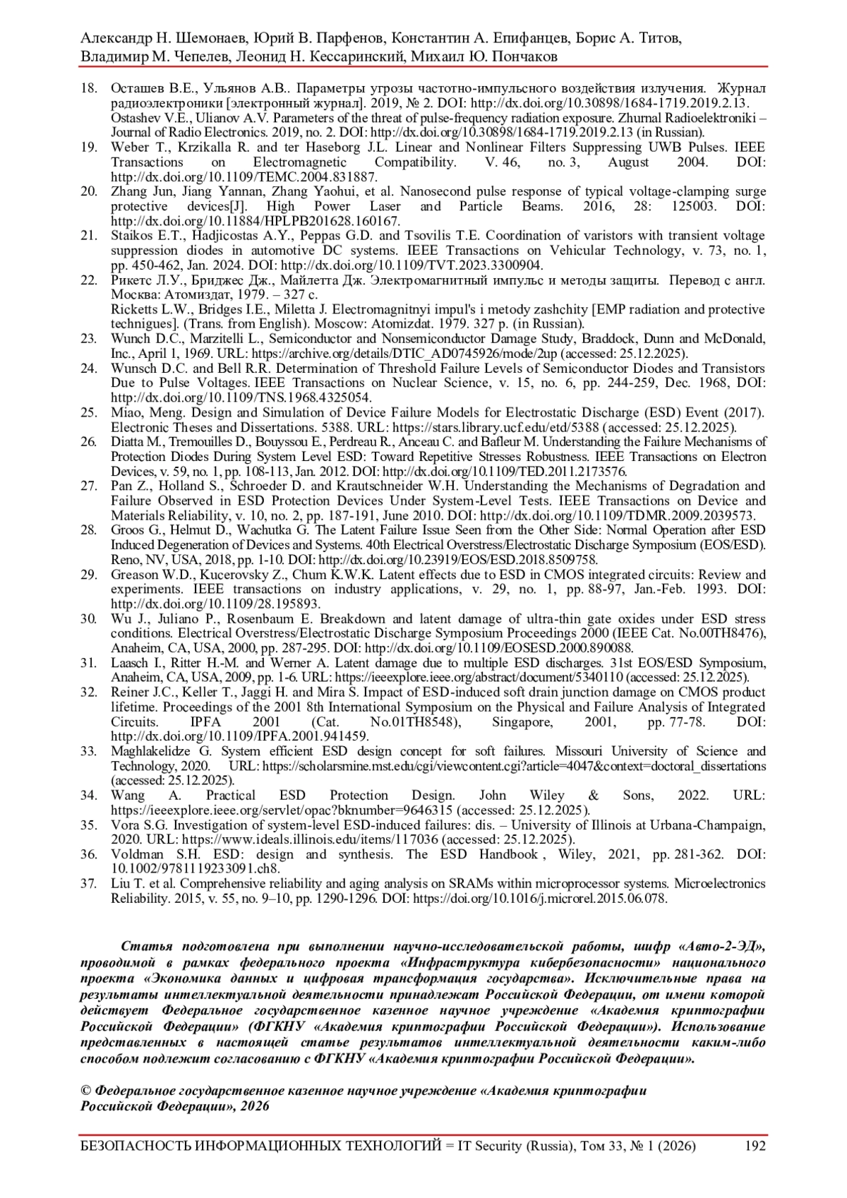 35. Vora S.G. Investigation of system-level ESD-induced failures: dis. - University of Illinois at Urbana-Champaign, 2020. URL: https://www.ideals.illinois.edu/items/117036 (accessed: 25.12.2025).