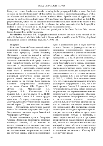 1. Кузнецов Д.Е. Научная дискуссия с одним из основателей военной педагогики Росгвардии: к 100-летнему юбилею Слепова Владимира Яковлевича и в честь 80-летия победы в Великой Отечественной войне. СПб.: Военная ордена Жукова академия войск национальной гвардии Российской Федерации, 2025. 160 с. EDN: HOYZZR