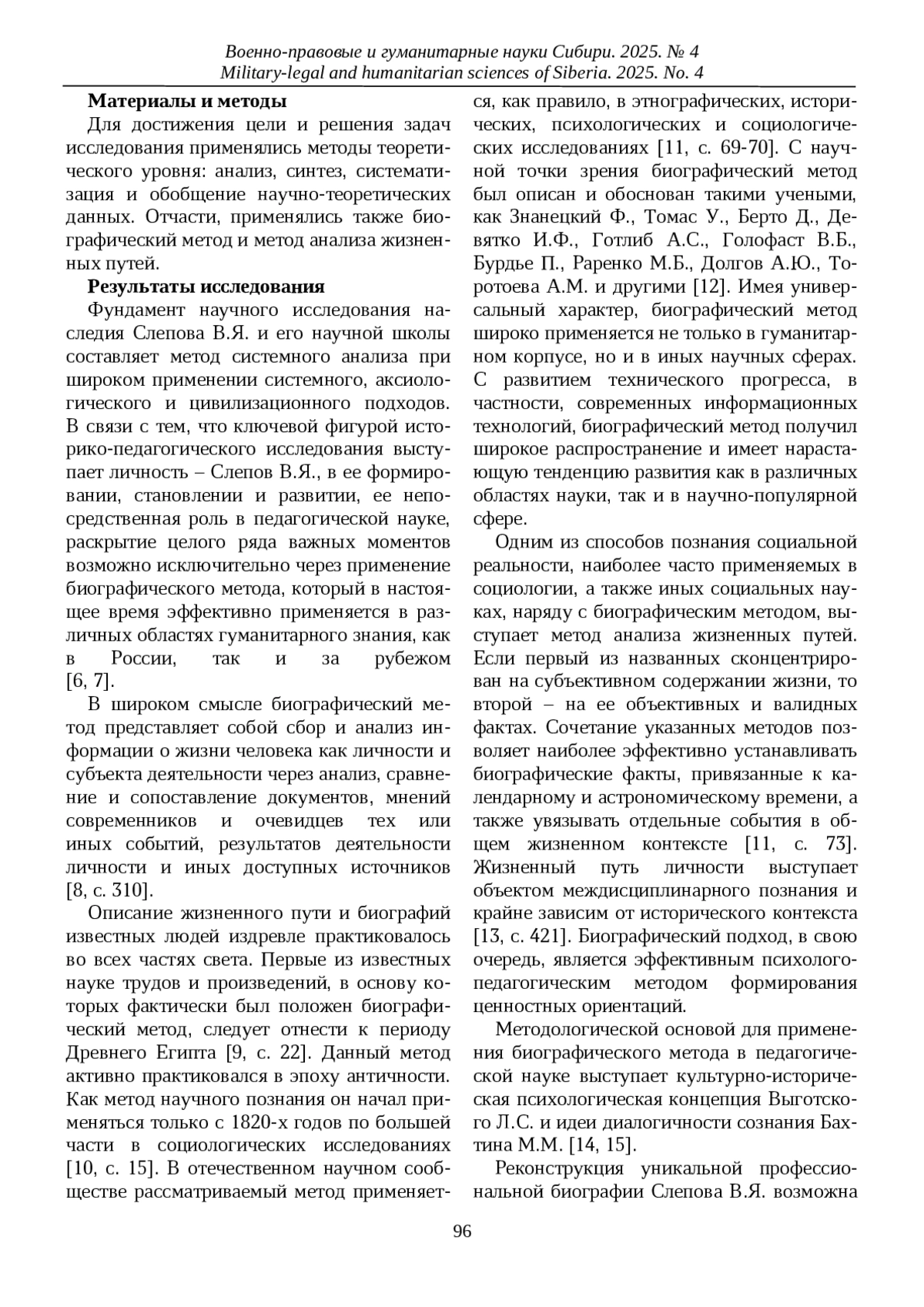 10. Афанасьев В.В. Биографический метод исследования в системе эволюции научного знания / В.В. Афанасьев, И.В. Афанасьев, А.А. Павленко // Педагогическое образование и наука. 2023. № 6. С. 14-23. EDN: TYGXTZ