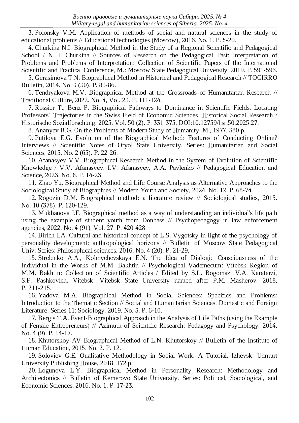 12. Рогозин Д.М. Биографический метод: обзор литературы // Социологические исследования. 2015. № 10 (378). С. 120-129. EDN: UYLXAL