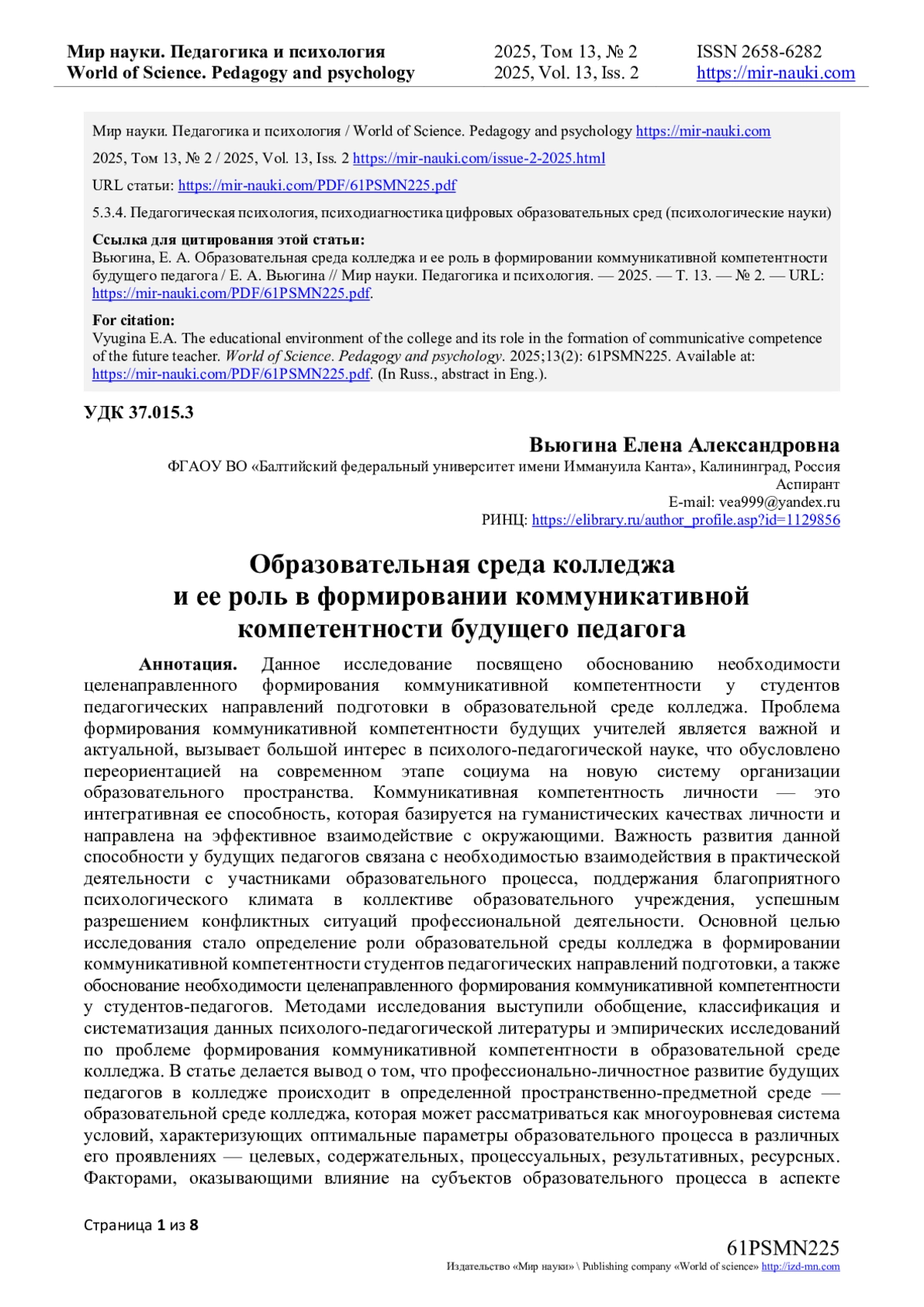 - ИЗДАТЕЛЬСТВО МИР НАУКИ